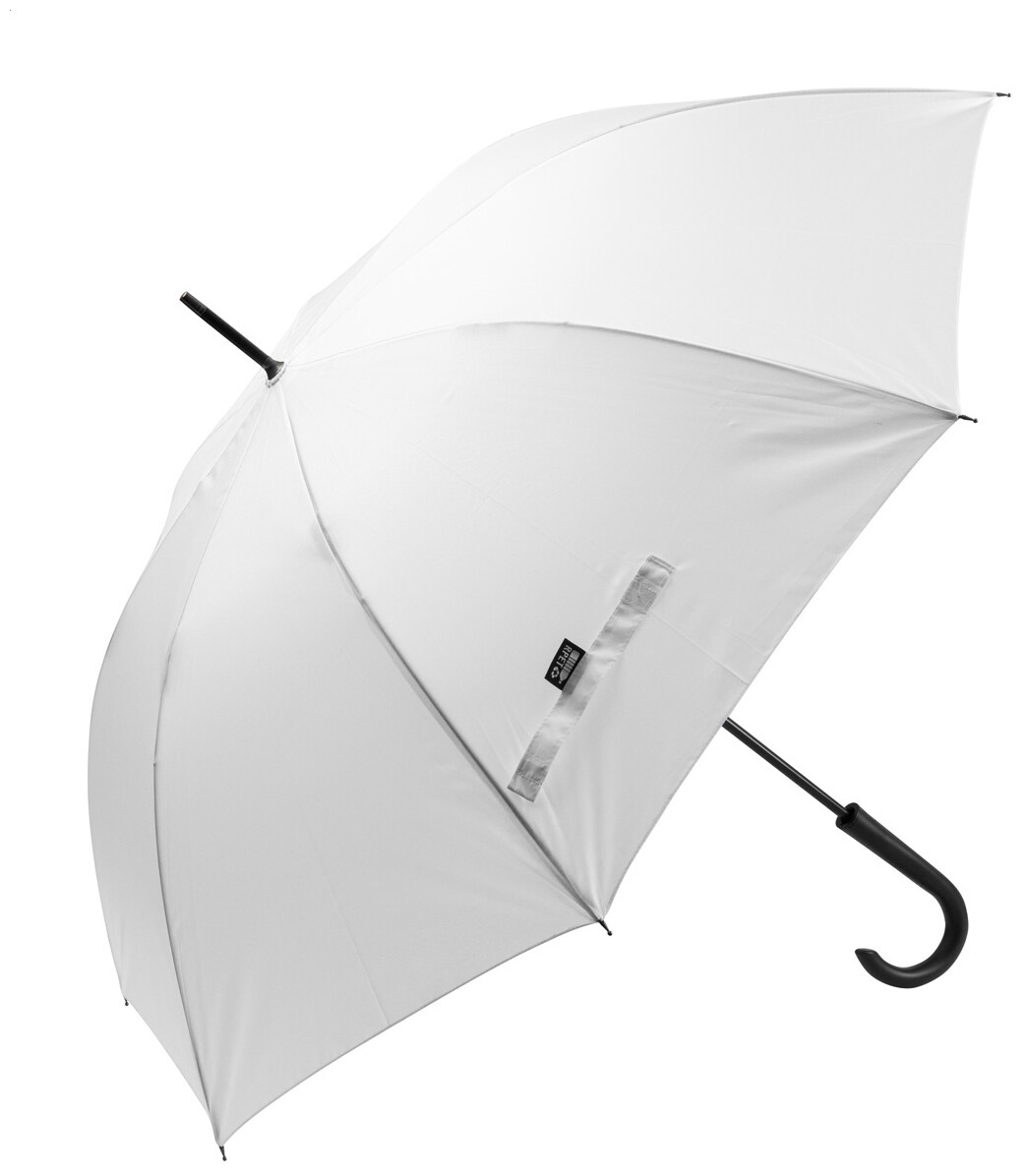 Automatický větruodolný deštník s 8 panely, sklolaminátovým rámem, kovovou tyčí a zakřivenou ABS rukojetí. Pongee 190T RPET. S výrazným štítkem RPET.