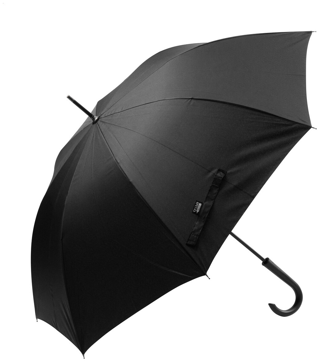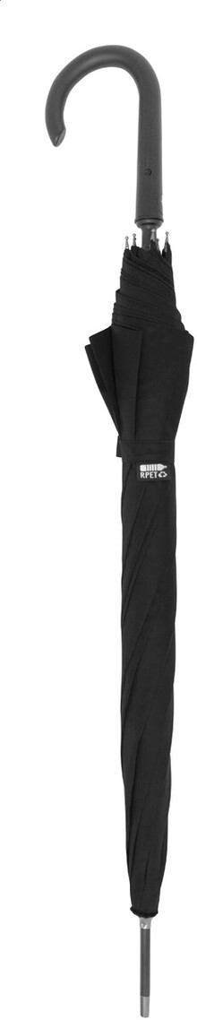 Automatický větruodolný deštník s 8 panely, sklolaminátovým rámem, kovovou tyčí a zakřivenou ABS rukojetí. Pongee 190T RPET. S výrazným štítkem RPET.