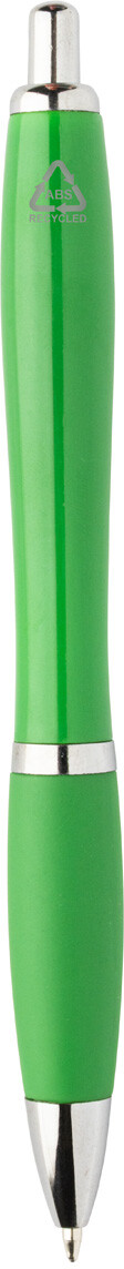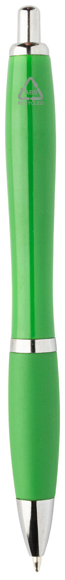 Kuličkové pero z recyklovaného ABS plastu s úchopem v odpovídající barvě a chromovanými částmi. S modrou náplní.