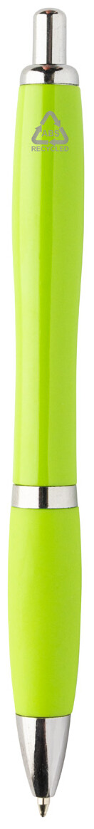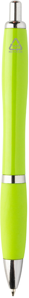 Kuličkové pero z recyklovaného ABS plastu s úchopem v odpovídající barvě a chromovanými částmi. S modrou náplní.
