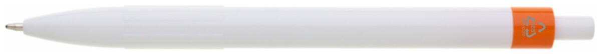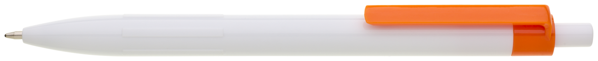 Plastové, kuličkové pero BIARE má bílé tělo, profilovaný úchop a oranžový klip. Náplň X-20 (120mm), modře píšící.