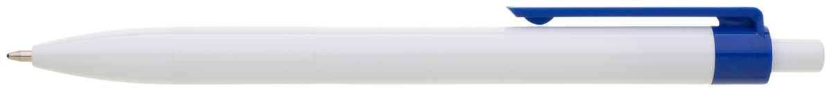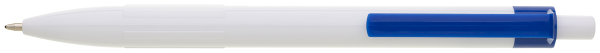 Plastové, kuličkové pero BIARE má bílé tělo, profilovaný úchop a modrý klip. Náplň X-20 (120mm), modře píšící.