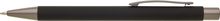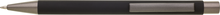 Kovová propiska CAGERI SOFT s hnědo-černými doplňky, s černým pogumovaným povrchem. Velkoobsahová modrá náplň.