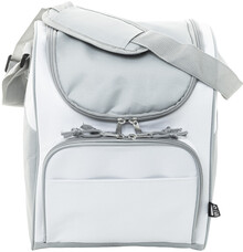 Chladicí taška RPET s hliníkovým polstrováním. Se 2 přihrádkami na zip, malou přední kapsou a nastavitelným ramenním popruhem. 600D RPET polyester s výrazným štítkem RPET.