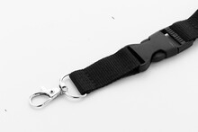 Polyesterový lanyard RPET s odnímatelnou kovovou karabinou a bezpečnostní přezkou.