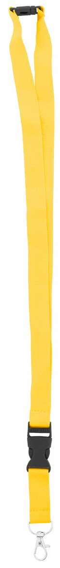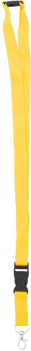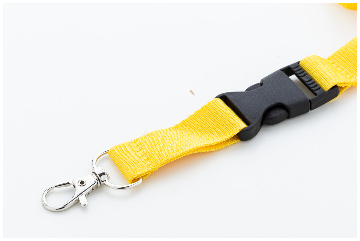Polyesterový lanyard RPET s odnímatelnou kovovou karabinou a bezpečnostní přezkou.
