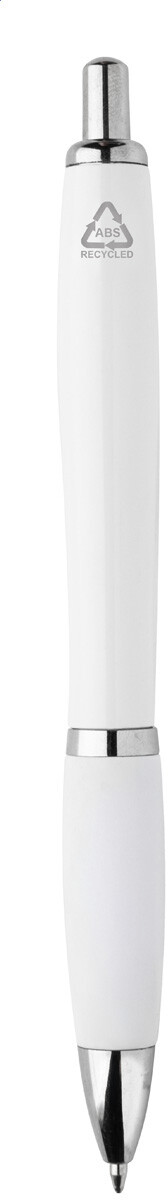 Kuličkové pero z recyklovaného ABS plastu s úchopem v odpovídající barvě a chromovanými částmi. S modrou náplní.