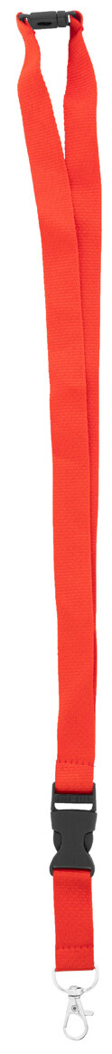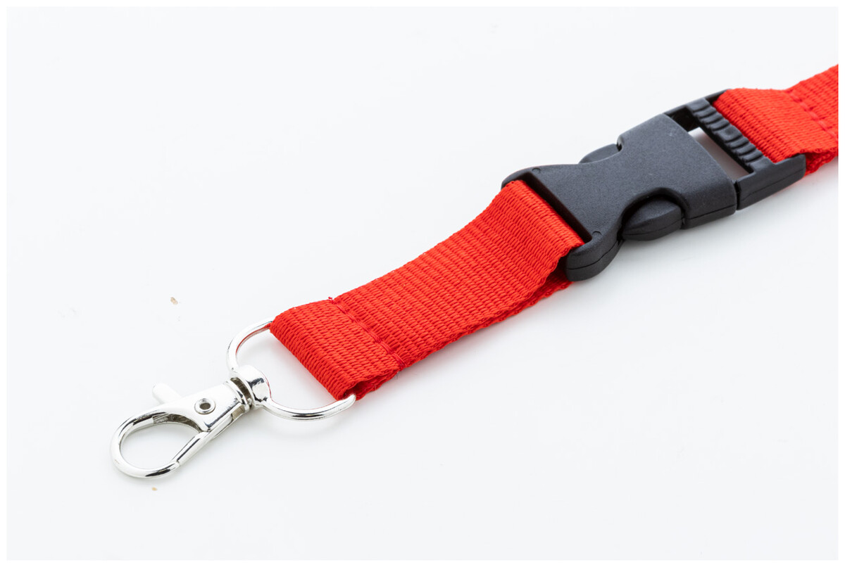 Polyesterový lanyard RPET s odnímatelnou kovovou karabinou a bezpečnostní přezkou.