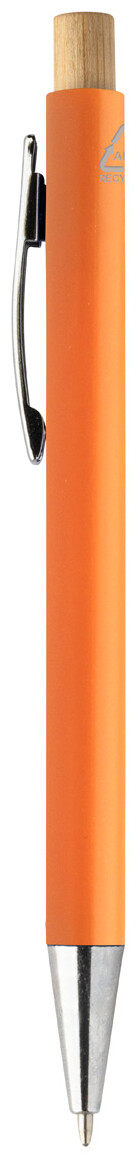 Kuličkové pero z recyklovaného ABS plastu s bambusovým tlačítkem a kovovým klipem. S modrou náplní.