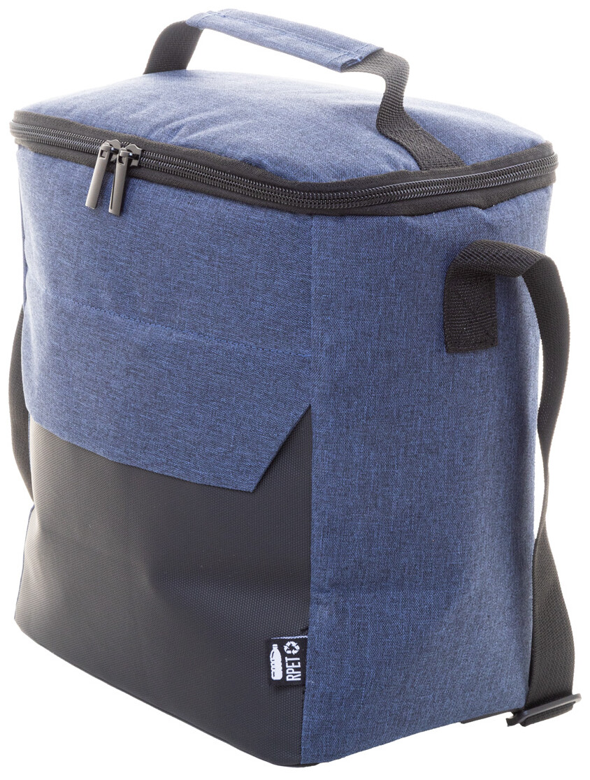 Chladicí taška na zip z RPET s detaily potaženými PU a PEVA vycpávkou. S rukojetí, nastavitelným ramenním popruhem a malou přední kapsou. 600D RPET polyester s výrazným štítkem RPET.