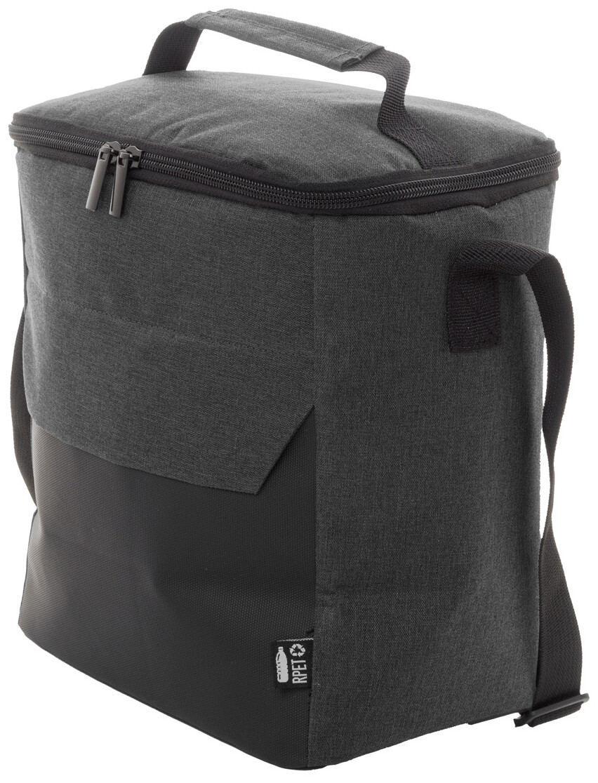 Chladicí taška na zip z RPET s detaily potaženými PU a PEVA vycpávkou. S rukojetí, nastavitelným ramenním popruhem a malou přední kapsou. 600D RPET polyester s výrazným štítkem RPET.