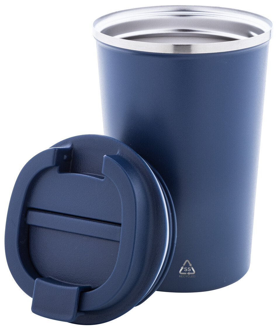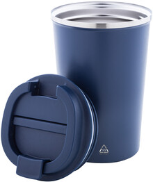Dvoustěnný termo hrnek z recyklované nerezové oceli s víčkem na pití z PP. 350 ml.