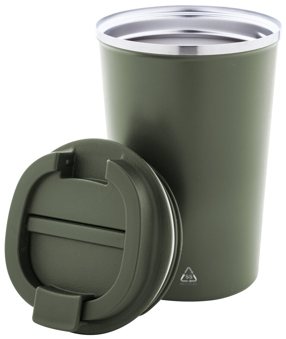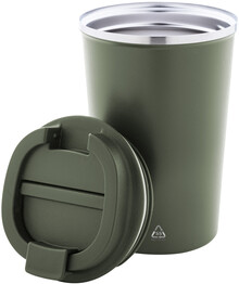 Dvoustěnný termo hrnek z recyklované nerezové oceli s víčkem na pití z PP. 350 ml.