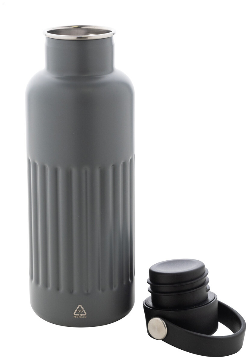 Dvoustěnná vakuově izolovaná láhev z recyklované nerezové oceli s PP plastovým přepravním víčkem. 500 ml.