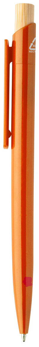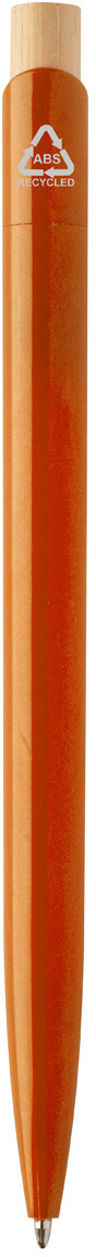 Kuličkové pero z recyklovaného ABS plastu s bambusovým tlačítkem. S modrou náplní.