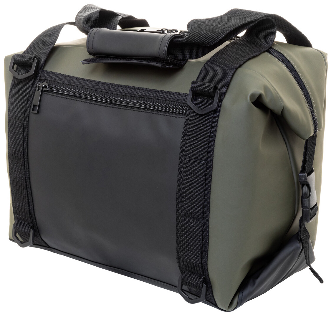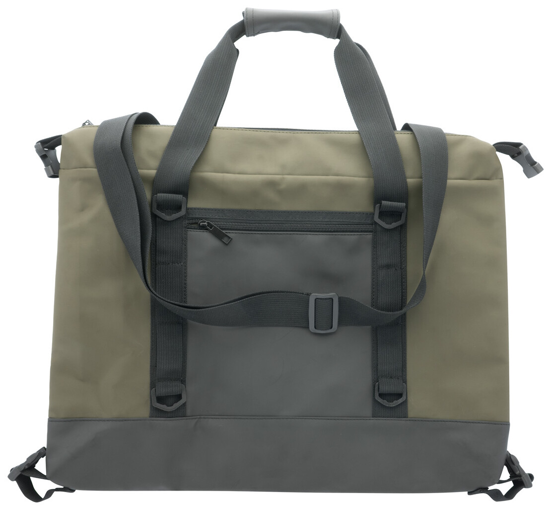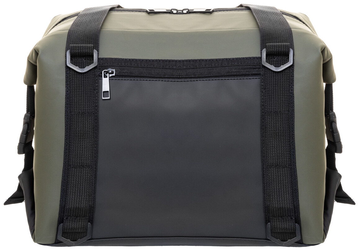 Skládací chladící taška na zip z měkké recyklované PU kůže s hliníkovou výplní a přední kapsou na zip. S bočními přezkami, držadly a nastavitelným ramenním popruhem. Tašku lze složit naplocho pro snadné skladování nebo ji během používání zajistit pomocí bočních výztuh.