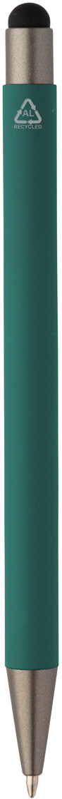 Kuličkové pero a dotykové pero z recyklovaného hliníku s pogumovaným tělem a kovovými částmi. S modrou náplní.