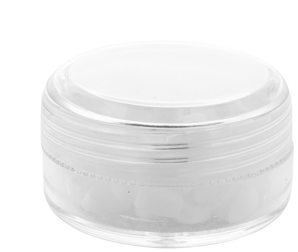 Kulatá průhledná plastová dóza s mintovými bonbóny s barevným šroubovacím víčkem. Obsahující cca. 12 gramů mentolových bonbonů bez cukru.