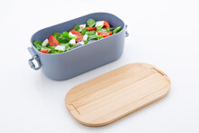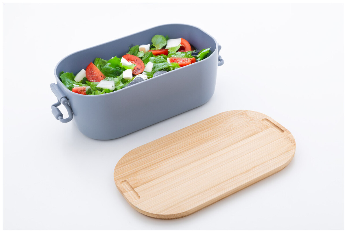 Box na jídlo z PP plastu s bambusovým víkem a uzávěrem na přezku, 1000 ml.