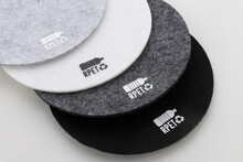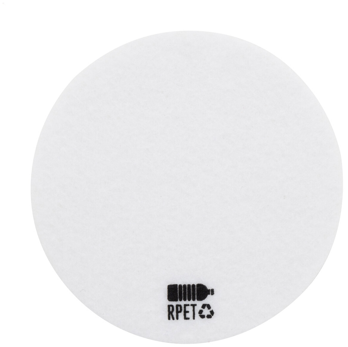 Kulatý plstěný podtácek RPET. S výrazným znakem RPET.