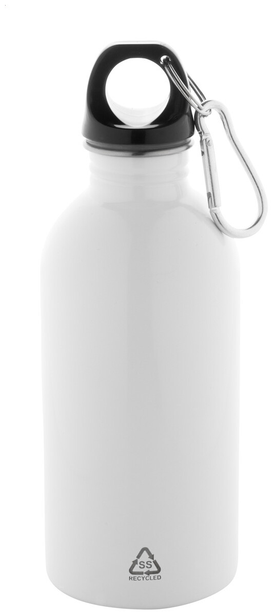 Láhev z recyklované nerezové oceli s hliníkovou karabinou, 400 ml.