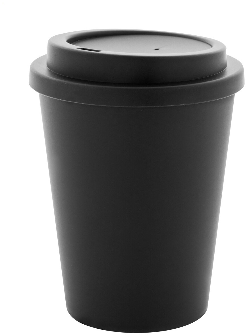 Dvoustěnný termo hrnek izolovaný PP plastem s víčkem na pití. 300 ml.