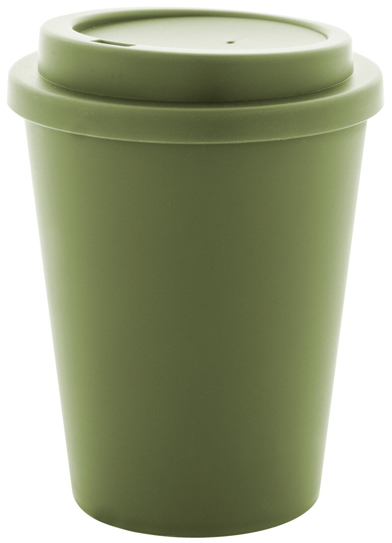 Dvoustěnný termo hrnek izolovaný PP plastem s víčkem na pití. 300 ml.