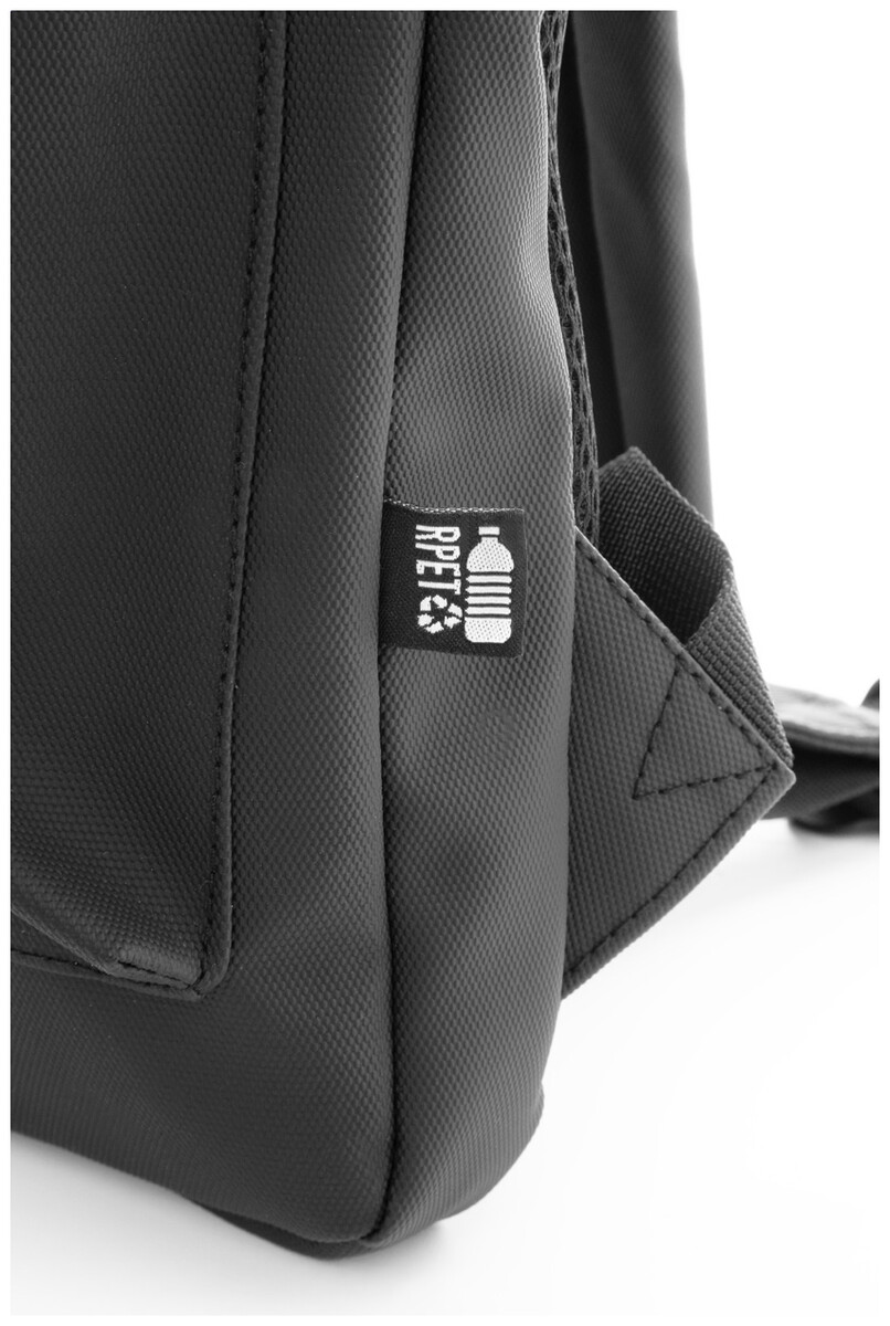 Vodotěsný tenký batoh na notebook RPET s přihrádkou na notebook (15") na zip a přední kapsou na zip. S polstrovanými zády a ramenními popruhy. Polyester 600D RPET potažený PU, s výrazným štítkem RPET.