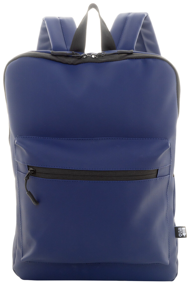 Vodotěsný tenký batoh na notebook RPET s přihrádkou na notebook (15") na zip a přední kapsou na zip. S polstrovanými zády a ramenními popruhy. Polyester 600D RPET potažený PU, s výrazným štítkem RPET.