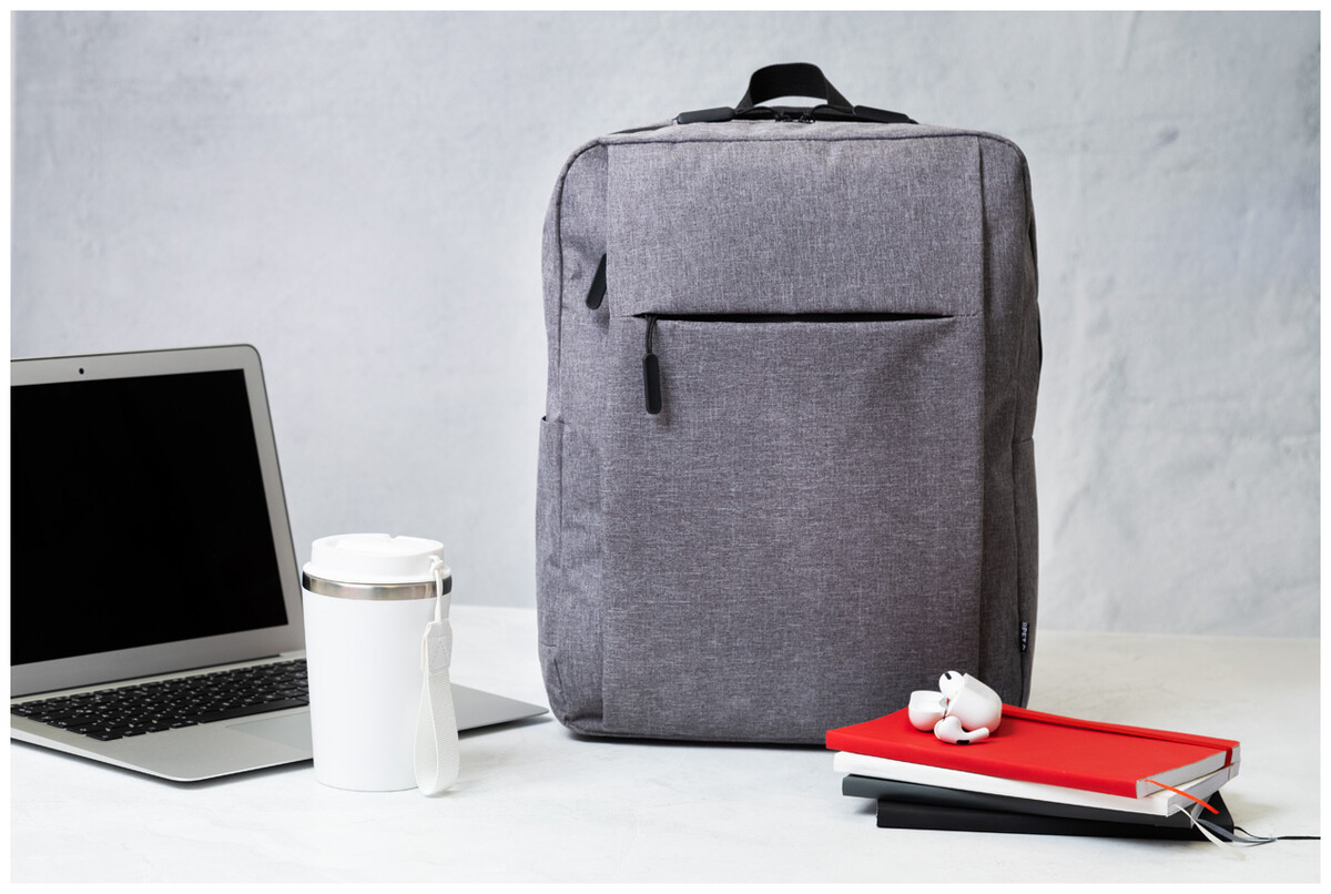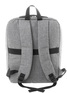 Batoh RPET s hlavním oddílem na zip, 2 kapsami na zip, boční kapsou a polstrovanou přihrádkou na notebook (15"). S popruhem na vozík, polstrovanými zády a ramenními popruhy. Polyester 600D RPET, s výrazným štítkem RPET.