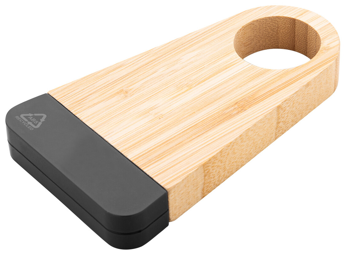 Bambusový a recyklovaný ABS držák na víno s vývrtkou z nerezové oceli.