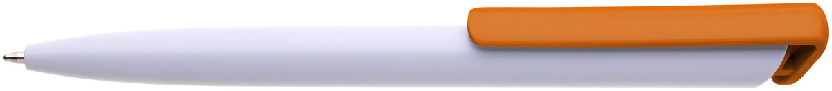 Česká propiska BOIA v minimalistickém designu bílého oválného těla s dynamickým tvarem oranžového masivního klipu. Tělo i klip nabízí velký prostor pro značení logem zákazníka. Materiál plast, náplň velkoobsahová, modře píšící. BOIA je vyráběna v České republice.