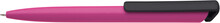 Česká propiska BOIA v minimalistickém designu tmavě růžového oválného těla s dynamickým tvarem černého masivního klipu. Tělo i klip nabízí velký prostor pro značení logem zákazníka. Materiál plast, náplň velkoobsahová, modře píšící. BOIA je vyráběna v České republice.