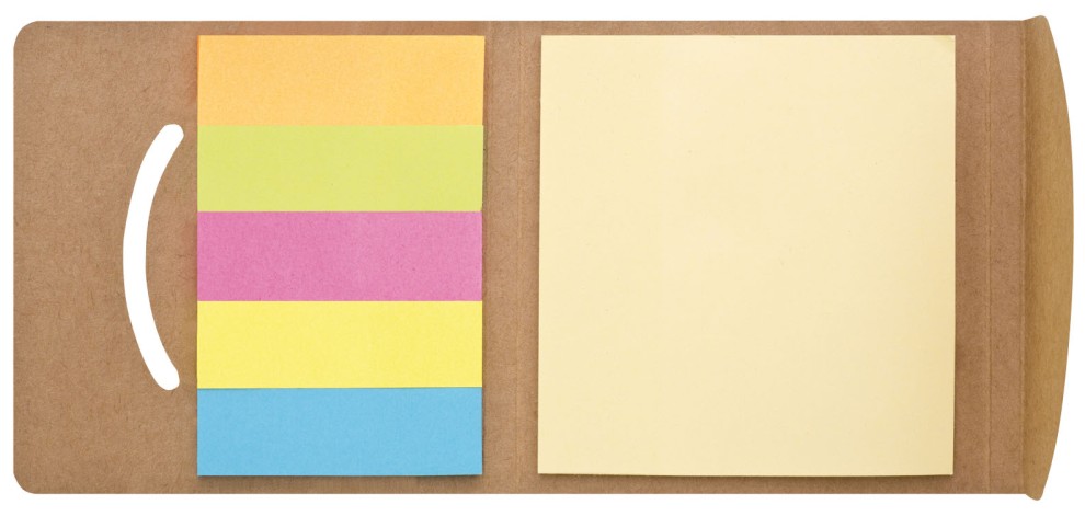 FOSFO - Lepicí bloček 75x75mm a 5 barev lepicích papírků 50x15 v uzavíratelném papírovém obalu.