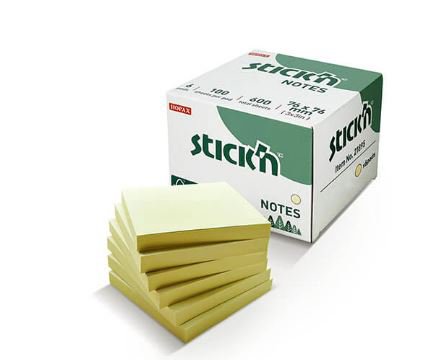 Samolepicí bloček Stick'n by Hopax FSC, 76x76mm, pastelově žlutá, 6 x 100 lístků