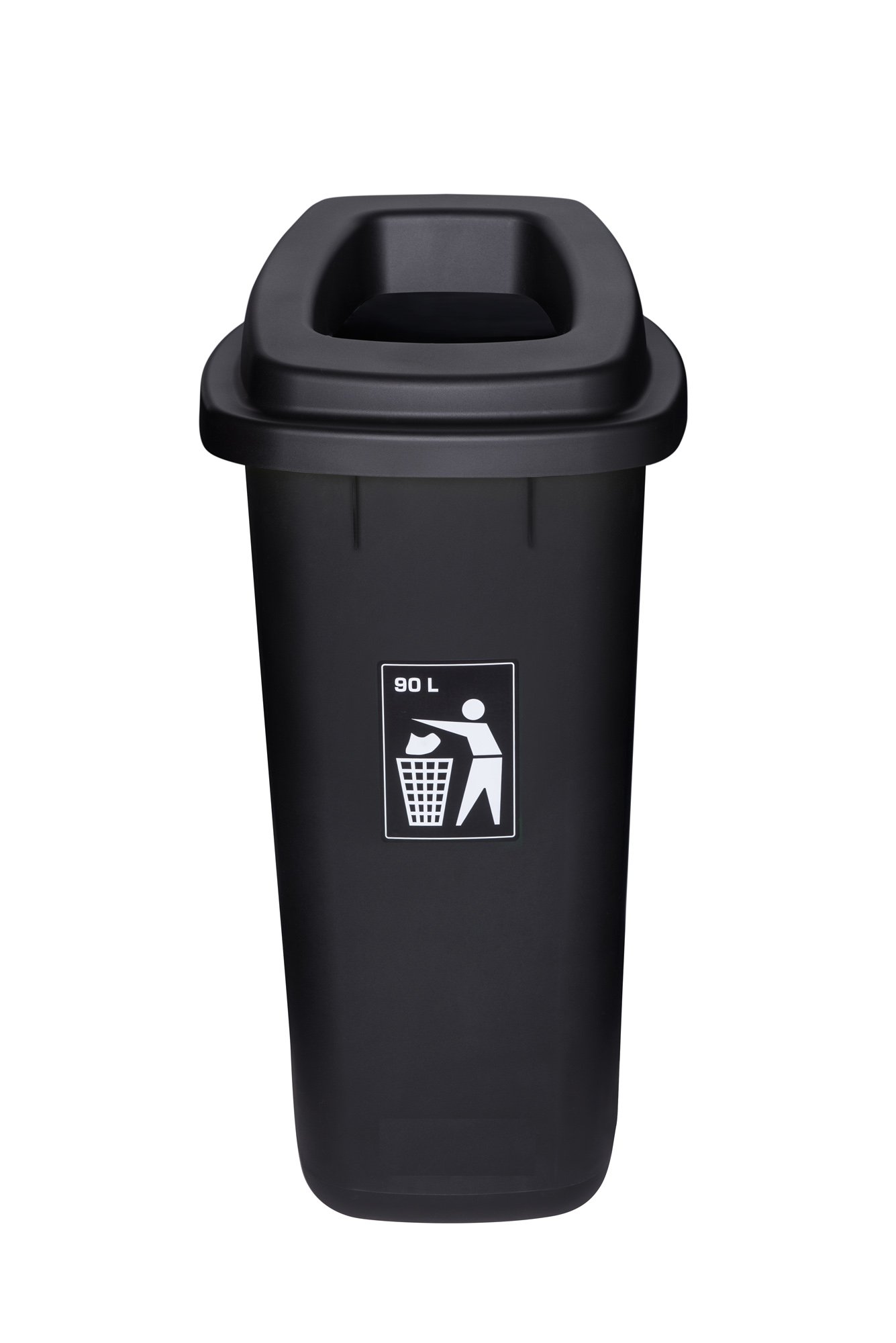 Koš o objemu 90 litrů, černé barvy, prodává se včetně víka.