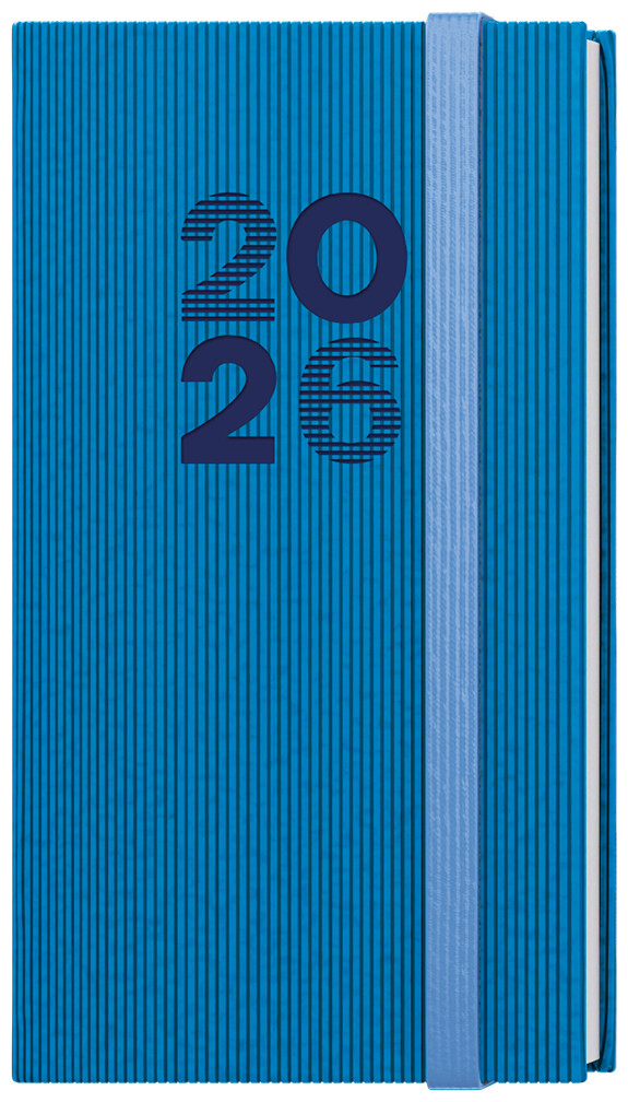 Kapesní týdenní diář v modré barvě ze strukturovaného materiálu a s gumičkou. Jednoduchost, která neomrzí. Moderní doplněk do každé kapsy. Diář má velký prostor pro poznámky a plánování.