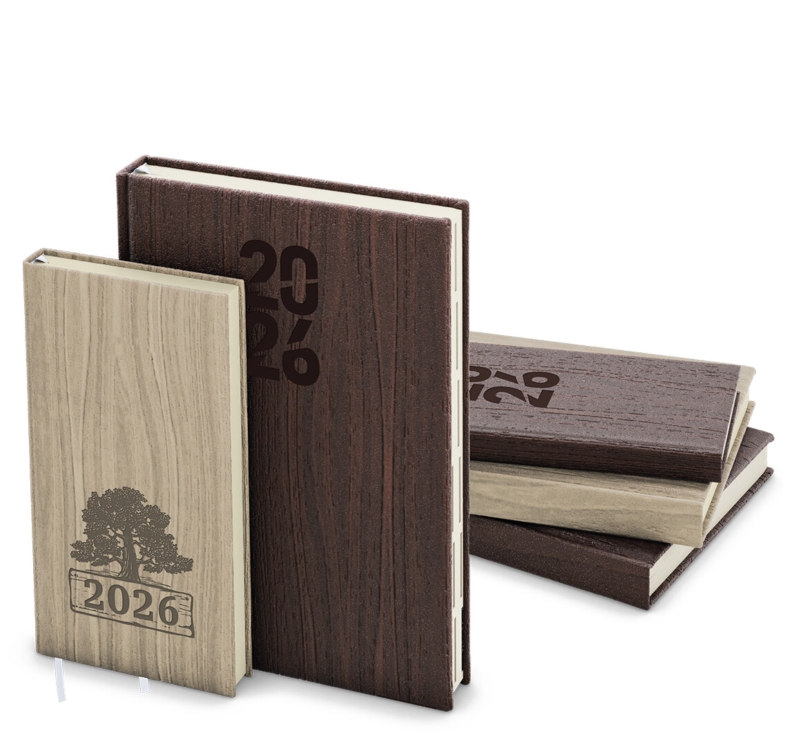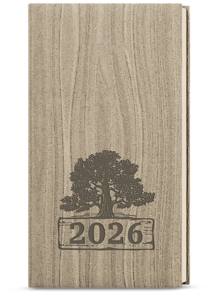Kapesní týdenní diář s přírodním motivem dřeva s ražbou. Je vyráběný z jemně strukturovaného materiálu, má velký prostor pro poznámky a plánování.