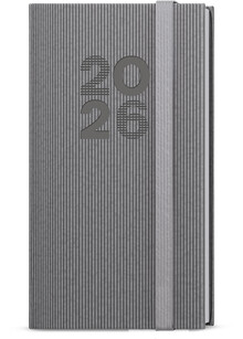 Kapesní týdenní diář v šedé barvě ze strukturovaného materiálu a s gumičkou. Jednoduchost, která neomrzí. Moderní doplněk do každé kapsy. Diář má velký prostor pro poznámky a plánování.