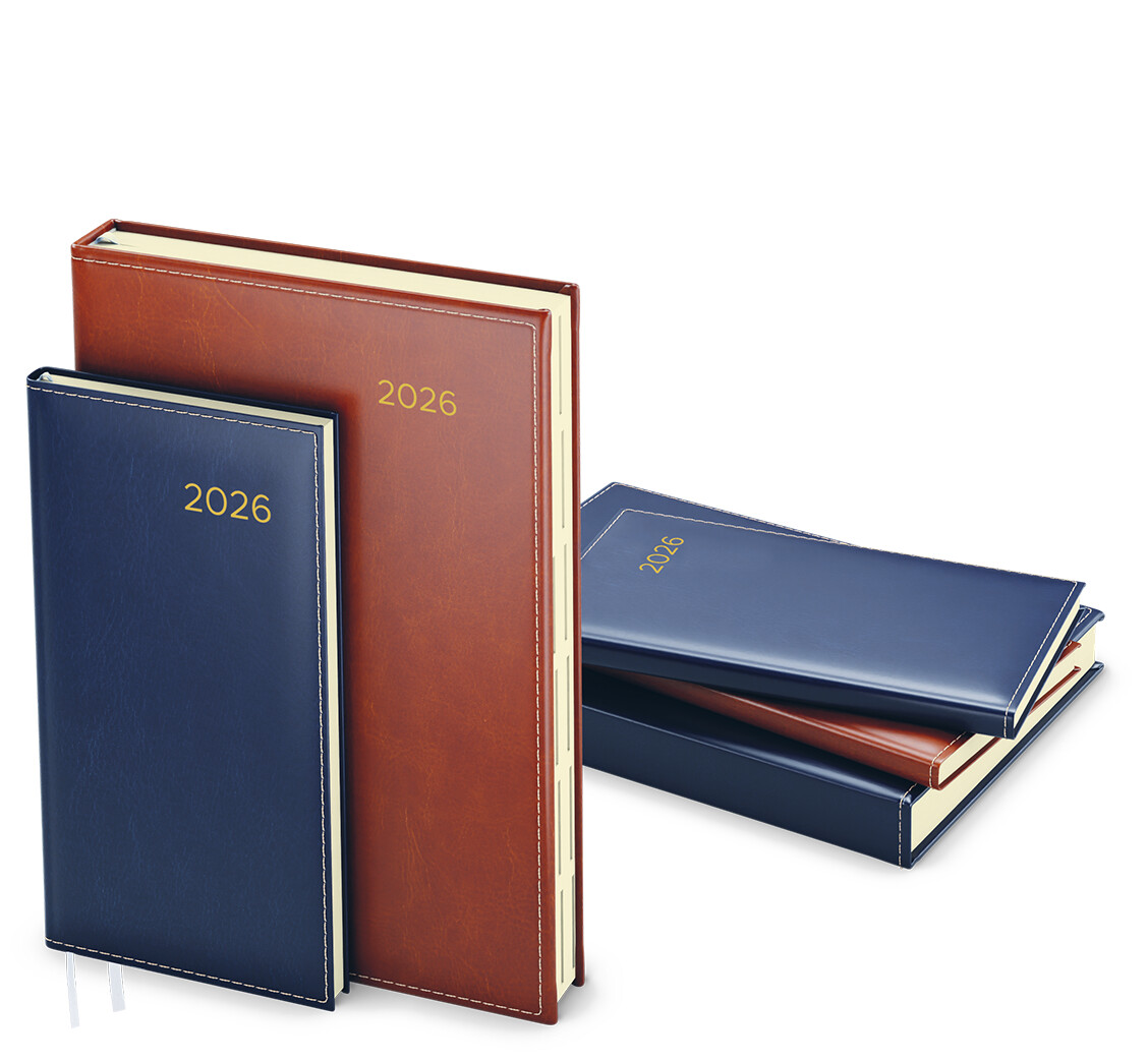 Týdenní diář vyrobený z hnědé koženky s moderní zlatou ražbou roku. Diář, který povýší jakoukoli Vaši schůzku.