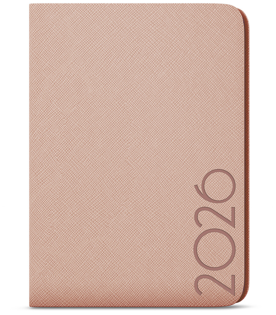 Diář s týdenním kalendáriem na jedné straně a na druhé straně s prostorem na poznámky. Desky jsou vyrobeny ze strukturovaného lesklého materiálu s jednostrannou pěnovou výplní a s kulatými rohy.
