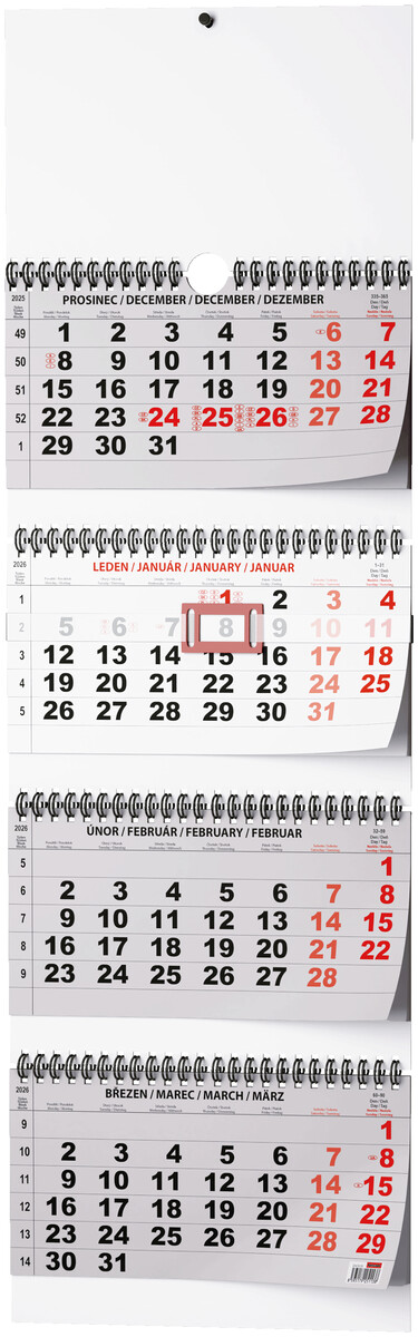 | BNC6-26 | Kalendář nástěnný Čtyřměsíční skládaný | 102,19 Kč | 123,65 Kč | 1 ks | |||