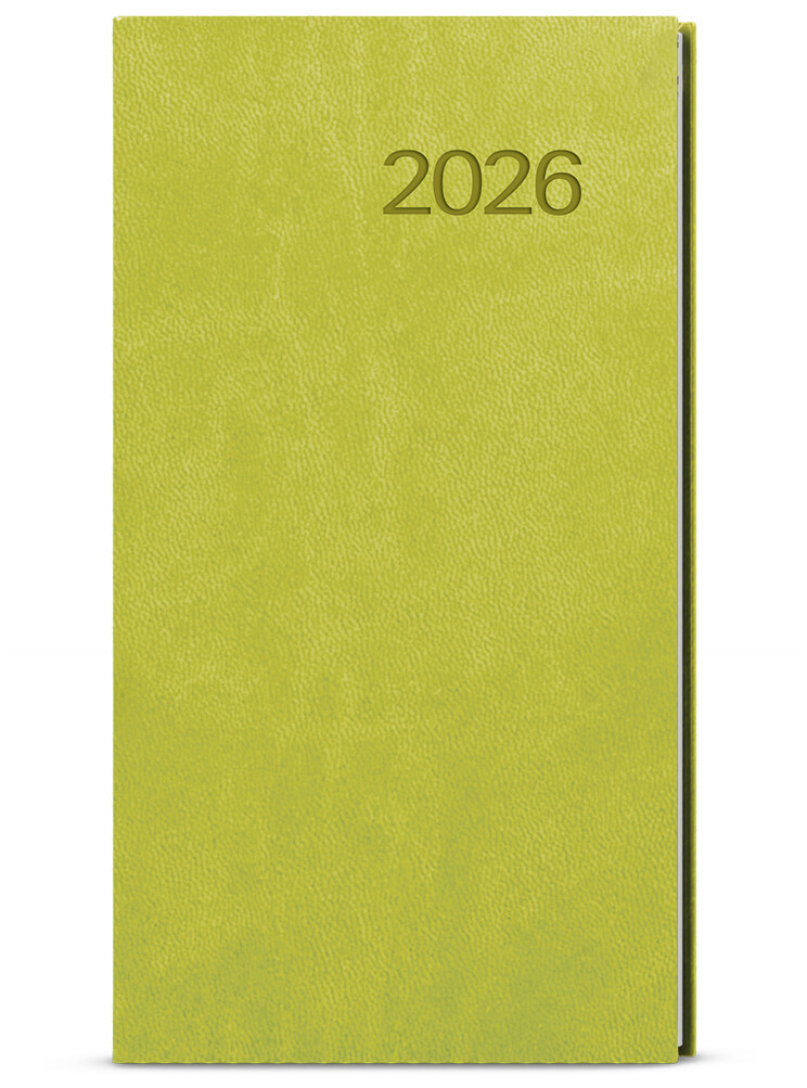 Kapesní týdenní diář v zelené barvě je vyráběný z jemné hladké vivelly. Trendy a praktický doplněk do každé kapsy. Diář má velký prostor pro poznámky a plánování.
