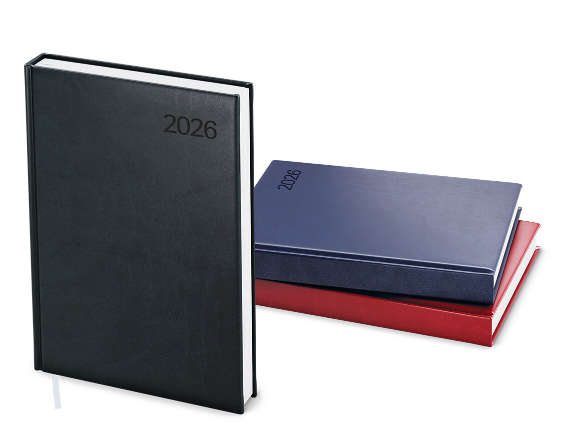- jemný hladký materiál, ražba roku, jednostranná pěnová výplň desek, šitá vazba V8, stužka, kapitálky, perforované rožky