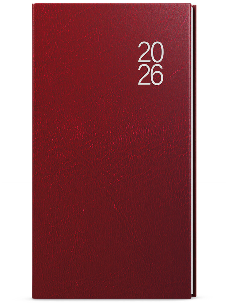 Kapesní týdenní diář v bordó barvě je vyráběný z oblíbeného, jemně strukturovaného materiálu. Jedná se o praktický doplněk do každé kapsy, který díky velkému prostoru na poznámky, ulehčí Vaše plánování.