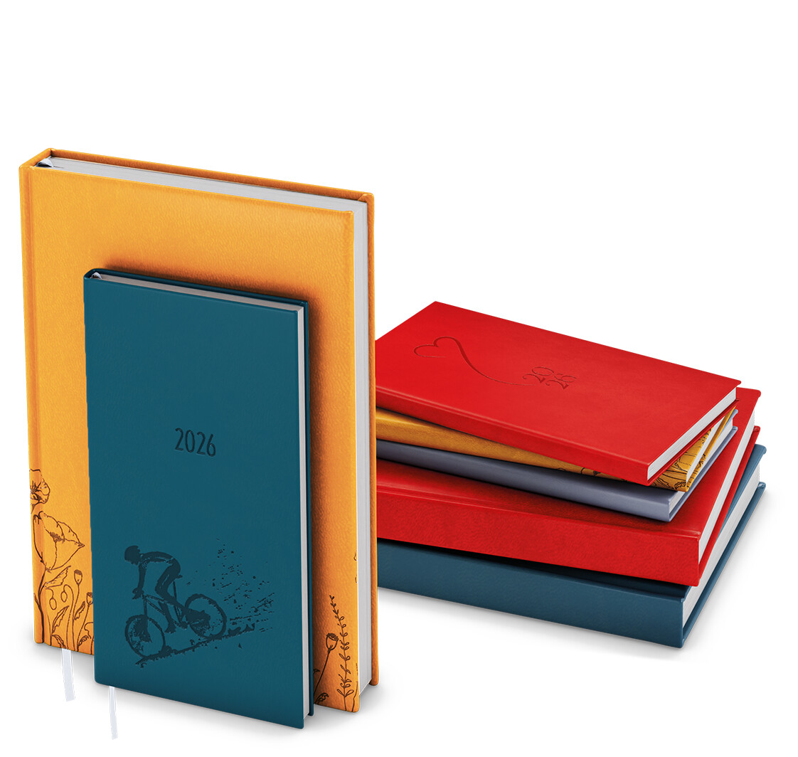 - jemný hladký materiál, ražba motivu a roku, šitá vazba V8, stužka, perforované rožky