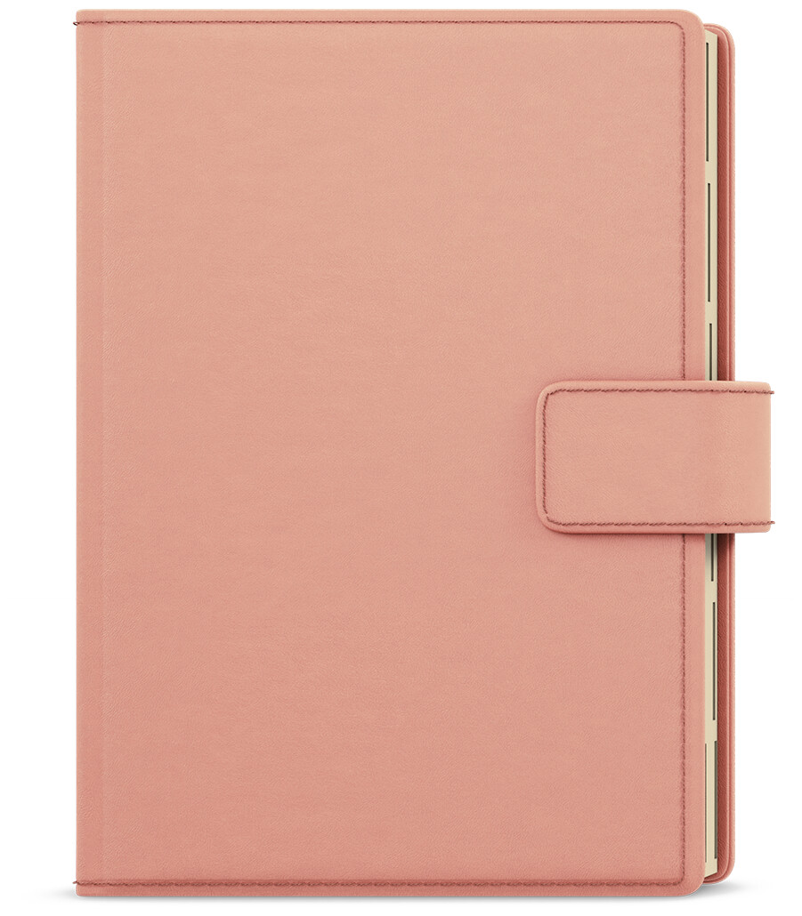Elegantní týdenní diář ve formátu A5 se stylovým a znovupoužitelným obalem v růžové barvě. Praktické vnitřní uspořádání nabízí množství přihrádek na vizitky, poutko na tužku a bezpečné magnetické zavírání. Diář bude působit luxusně a profesionálně – ideální volba pro práci, podnikání i osobní organizaci.