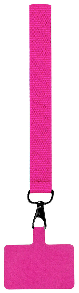 Polyesterový pásek na zápěstí, na mobil s vložkou na telefon a kovovou karabinou.