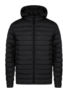 Větru a vodě odolná polstrovaná bunda na zip s bočními kapsami na zip a nastavitelnou kapucí. S polyesterovým pouzdrem RPET. 100% RPET polyester s výrazným štítkem RPET.