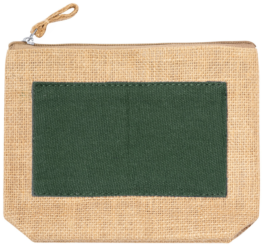 Kosmetická taštička na zip z laminované juty a bavlny.
